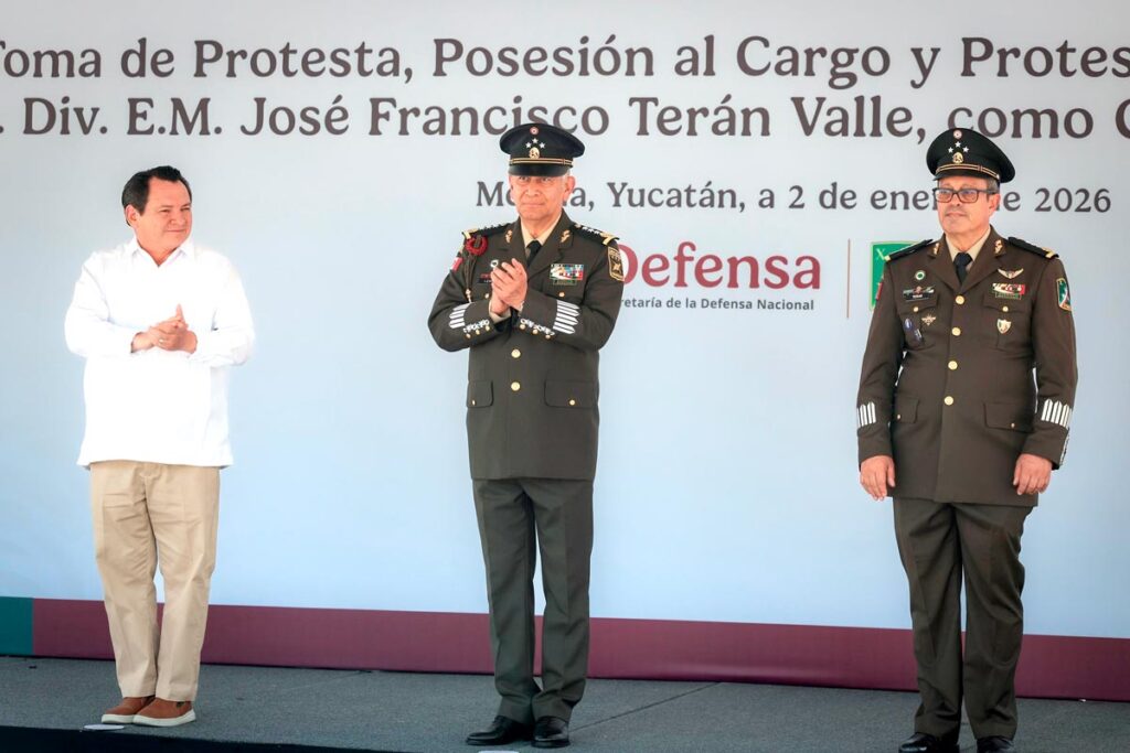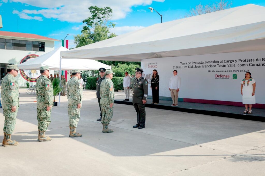 Durante el acto se destacó la trayectoria de Terán Valle, que incluye cargos diplomáticos, condecoraciones y responsabilidades en diversas brigadas y zonas militares, además de su labor como director del Servicio Militar Nacional y como agregado militar y aéreo en la embajada de México en Canadá.