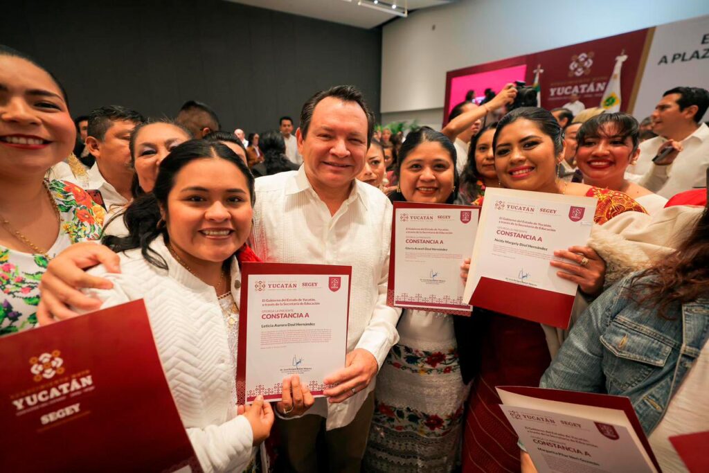 “Por eso queremos que la justicia laboral deje de ser un anhelo para convertirse hoy en realidad. Gracias por no rendirse, gracias por creer en nosotros, pero más gracias por dedicar su vida a formar en las escuelas el Yucatán que todos queremos. Que esta plaza no sea una meta alcanzada para ustedes, sino el inicio de una vida más tranquila, más justa y más feliz para ustedes y para sus hijos”, aseguró.