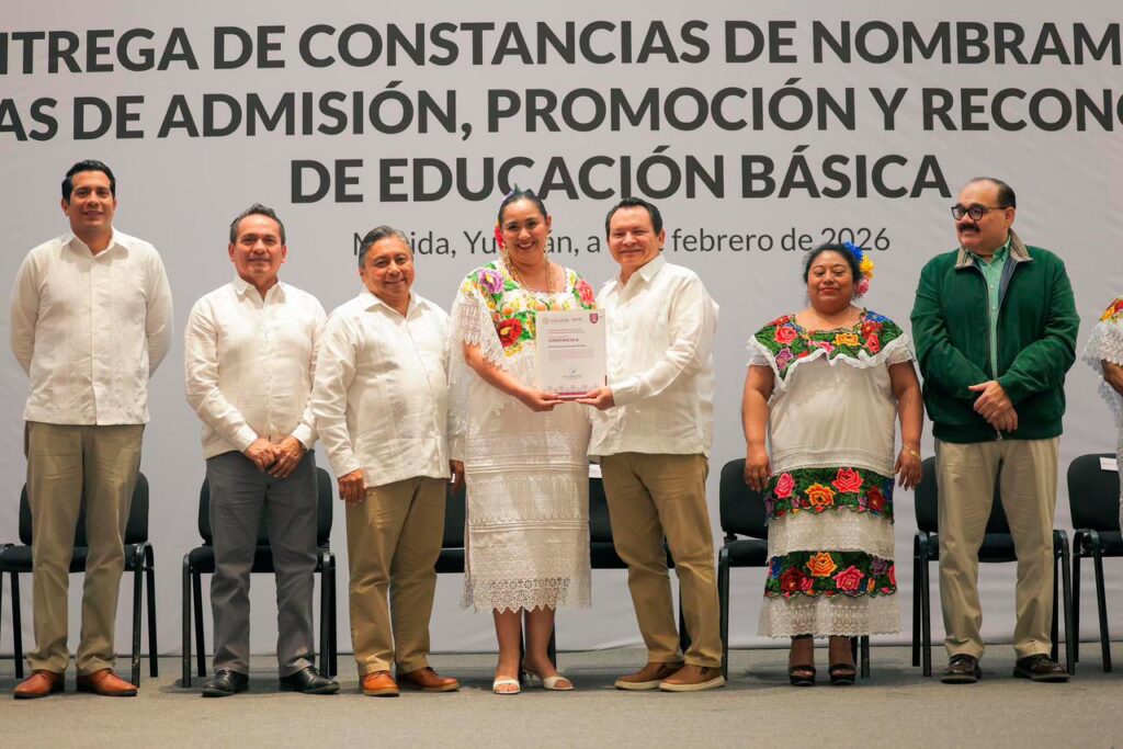 En su turno, el titular de la Segey, Juan Enrique Balam Várguez, afirmó que cada una de las constancias que se entregan respalda años de estudio, esfuerzo, sacrificio y noches de preparación de las y los docentes para sus exámenes de admisión y de promoción, todo ello en cumplimiento de su vocación inquebrantable.