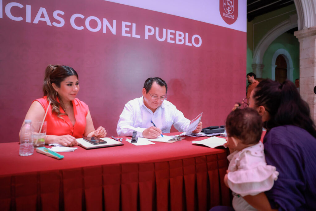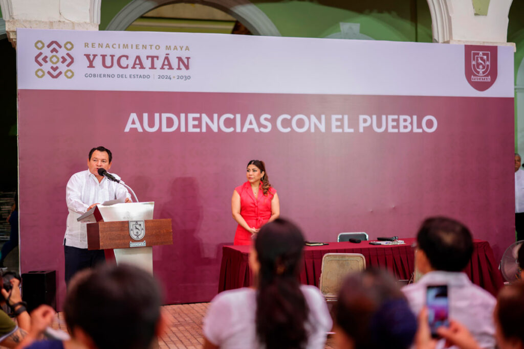 Durante la séptima jornada de Audiencias con el Pueblo, el Gobernador Joaquín Díaz Mena reiteró su compromiso con las y los yucatecos, escuchando de primera mano las necesidades de mujeres, madres de familia y personas en situación en situación de vulnerabilidad, así como reportes relacionados con servicios públicos como fugas de agua, baches y escuelas en condiciones precarias.