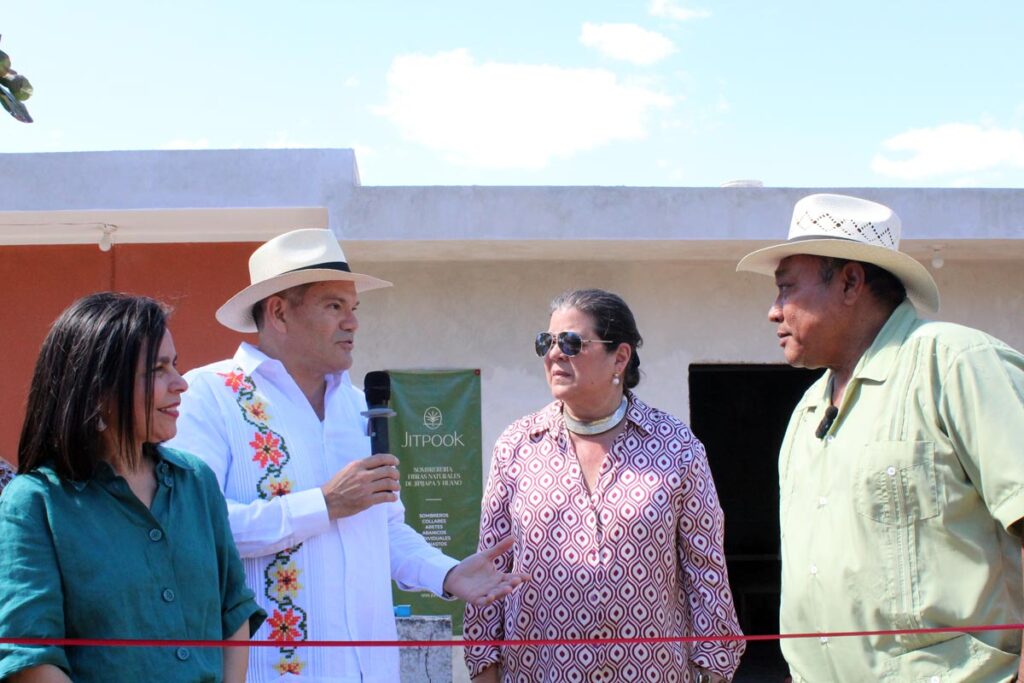 Como parte del fortalecimiento del sector artesanal y del impulso al desarrollo económico comunitario, el director general del Instituto Yucateco de Emprendedores (IYEM), Salvador Antonio Vitelli Macías, y la directora general del Fondo Nacional para el Fomento de las Artesanías (Fonart), Sonya Santos Garza, visitaron el Proyecto Estratégico Jit Pook, ubicado en Cuch Holoch, municipio de Halachó, para inaugurar su espacio de comercialización y fortalecer su crecimiento productivo.