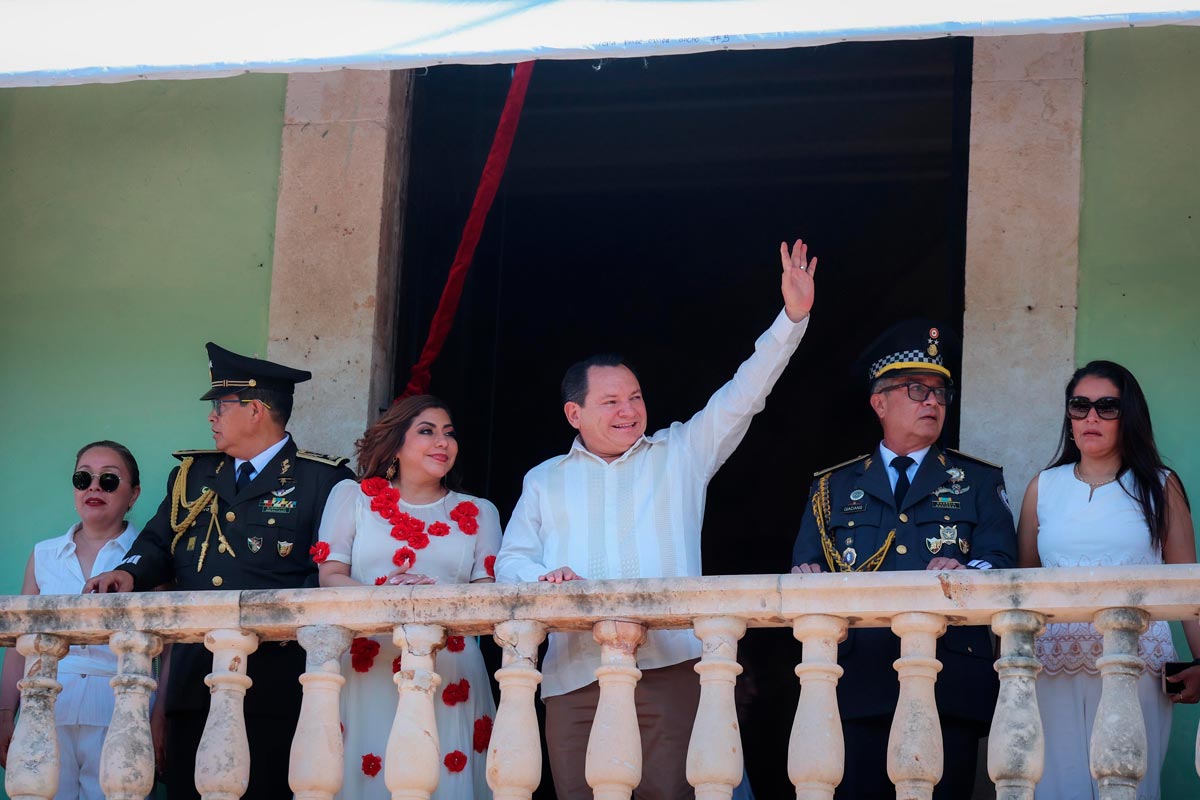 Desde el balcón central de Palacio de Gobierno, Díaz Mena, junto con la presidenta honoraria del Sistema para el Desarrollo Integral de la Familia (DIF) Yucatán, Mtra. Wendy Méndez Naal, presenció el vistoso desfile a cargo de 4,927 elementos divididos en 62 contingentes, que inundaron el Centro Histórico de Mérida con patriotismo y orgullo de ser mexicanos.