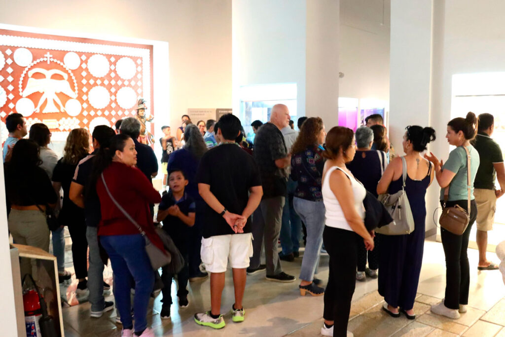 El mayor flujo llegó con la noche, con este recorrido especial dentro del programa Museo de Noche que en esta ocasión formó parte de las actividades del Otoño Cultural 2025, organizado por la Secretaría de la Cultura y las Artes y que además incluyó el último fin de semana de visitas a la exposición temporal dedicada al bordado maya ritual.