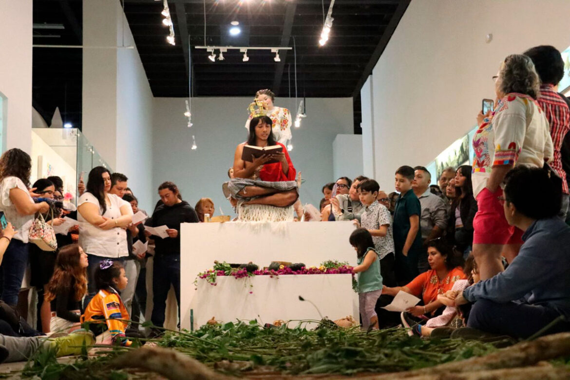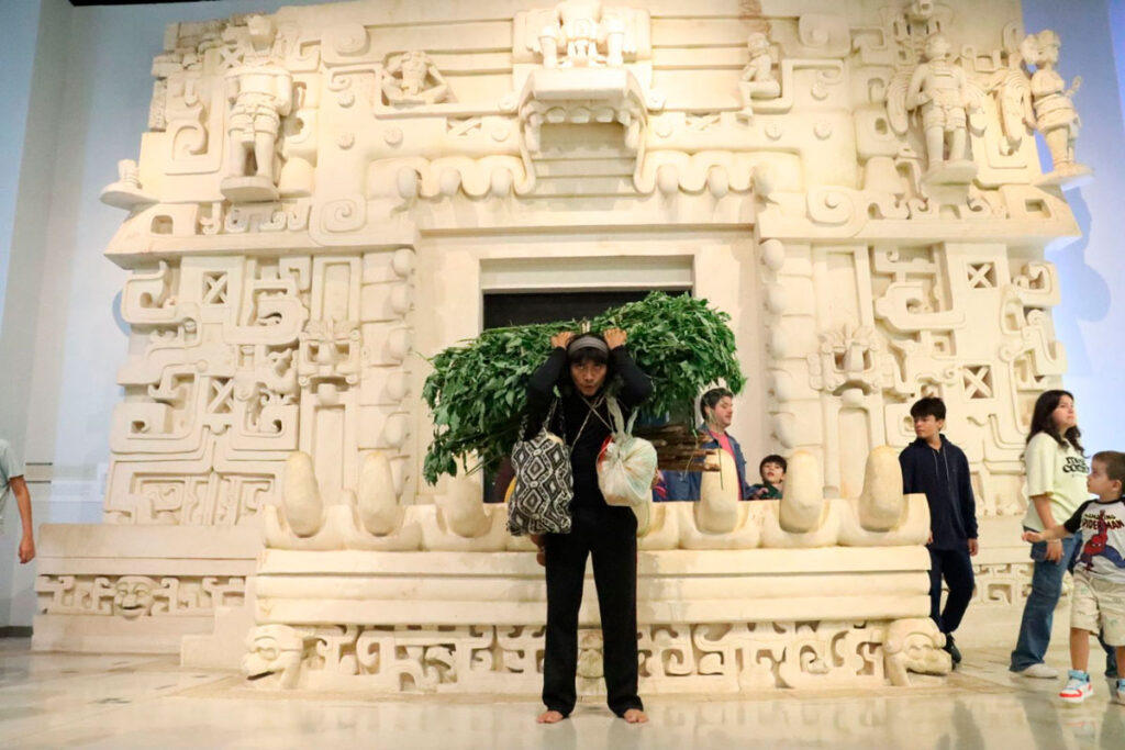 La Sala de Exposición Permanente se convirtió en un escenario para este acto donde la narrativa del Gran Museo del Mundo Maya generó el contexto necesario para la intervención artística, a través de una interacción entre el artista y las piezas del recinto, creando un diálogo para la reflexión de la historia decolonial.