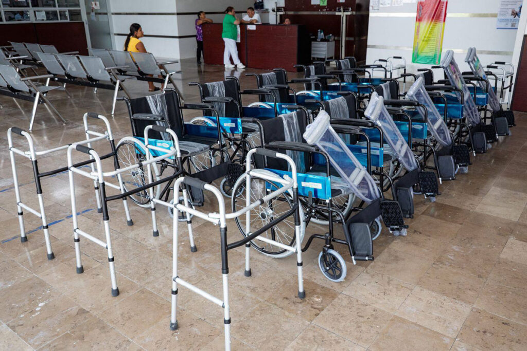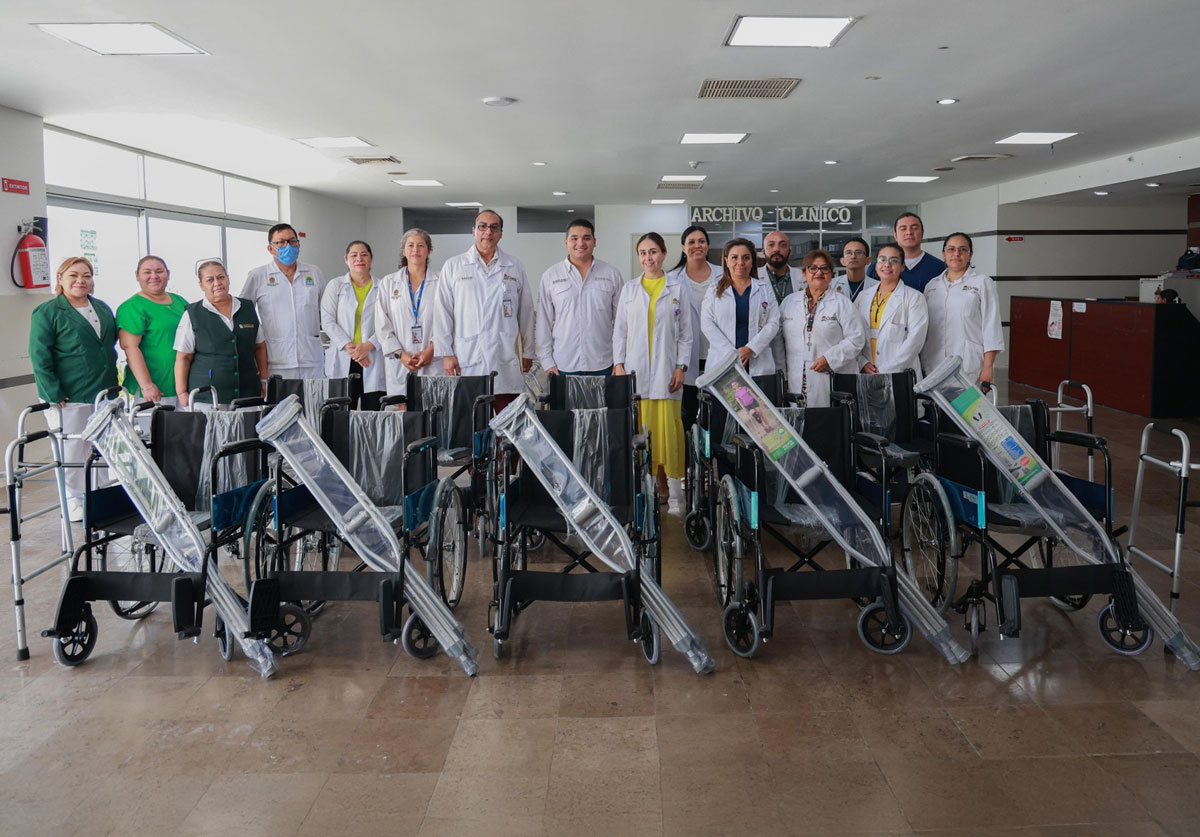 Playa del Carmen.- Con el firme compromiso de mejorar el bienestar de las familias, el presidente honorario del DIF Playa del Carmen, Eduardo Asencio Martínez, entregó sillas de ruedas, andaderas y muletas al Hospital General del Bienestar, equipos que brindarán mayor independencia, seguridad y calidad de vida a los pacientes que los requieran.