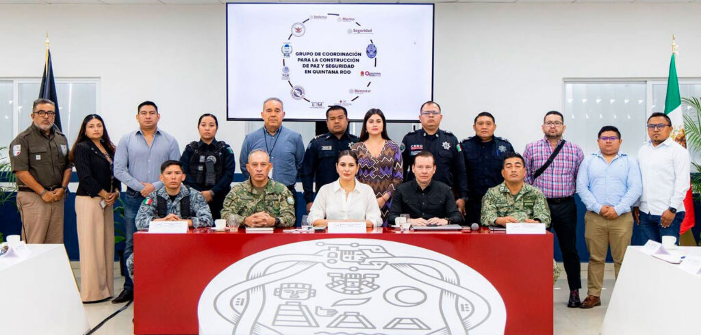 Playa del Carmen.– La alcaldesa Estefanía Mercado participó hoy en la reunión del Grupo de Coordinación para la Construcción de Paz en Quintana Roo, en donde estuvo acompañada por el titular de la Secretaría de Seguridad Ciudadana Municipal, Carlos Montesinos.