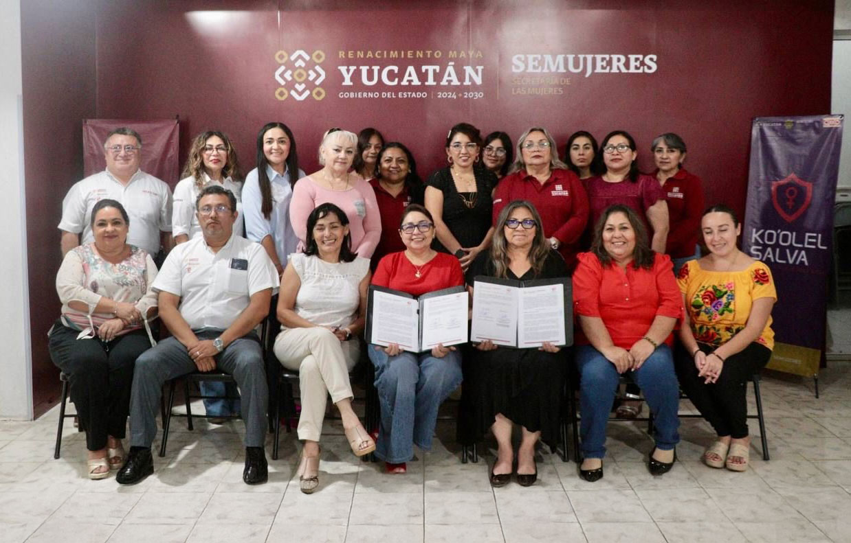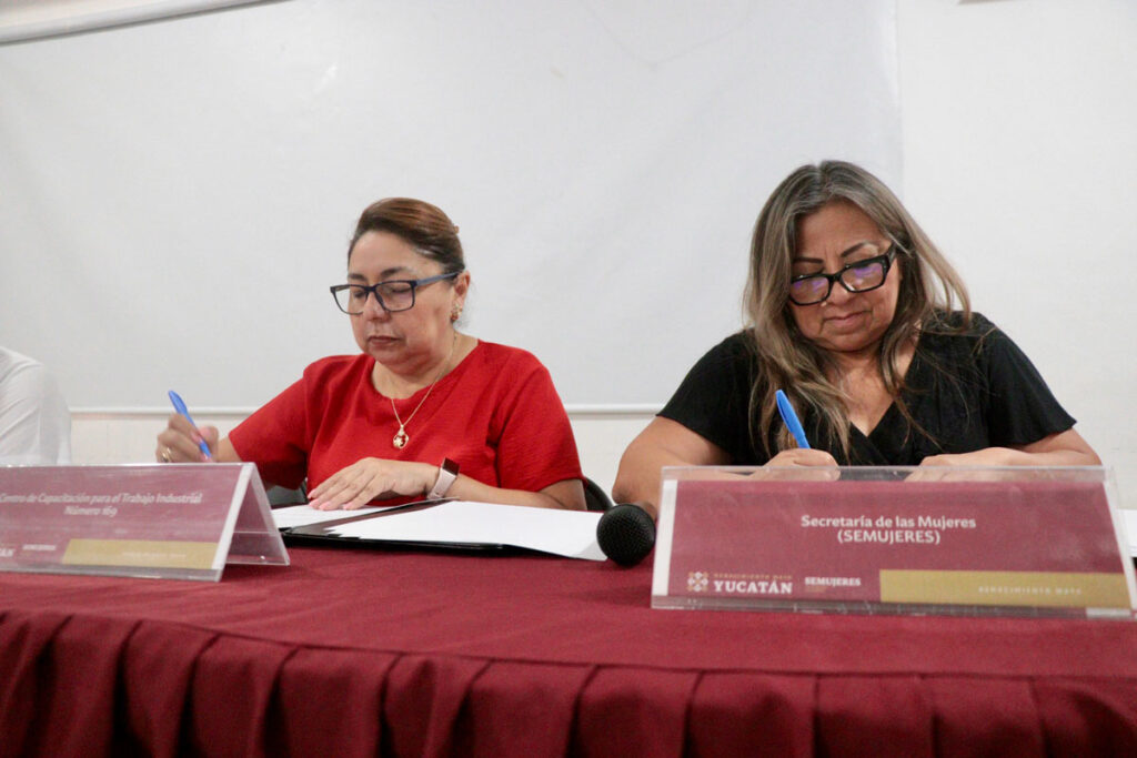 El acuerdo signado por la titular de Semujeres, Sisely Burgos Cano, y la responsable de las funciones de dirección del Cecati 169, Patricia del Carmen León Novelo, permitirá impartir 12 cursos con certificación y diploma de competencias, los cuales estarán disponibles a través de Semujeres con un descuento del 40%.