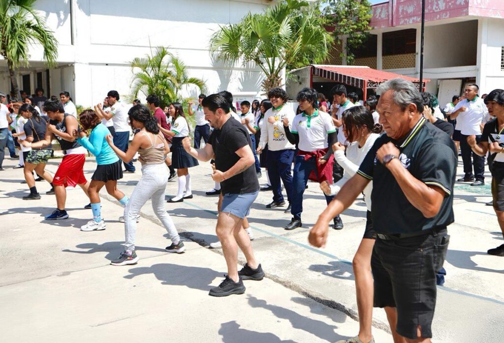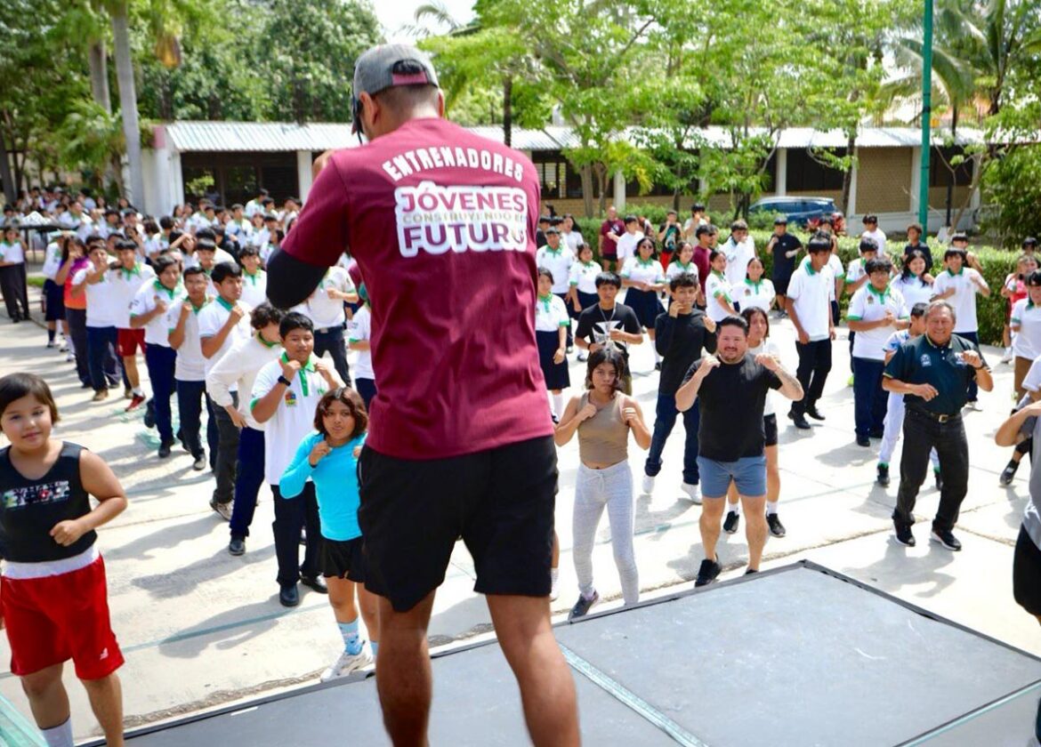Playa del Carmen.- Con la participación de cientos de jóvenes beneficiarios del programa Jóvenes Construyendo el Futuro y estudiantes del plantel CECyTE, se llevó a cabo una jornada de clases de box comunitario como parte de las acciones orientadas a fomentar la sana recreación, el deporte y la integración social en espacios gratuitos y accesibles.