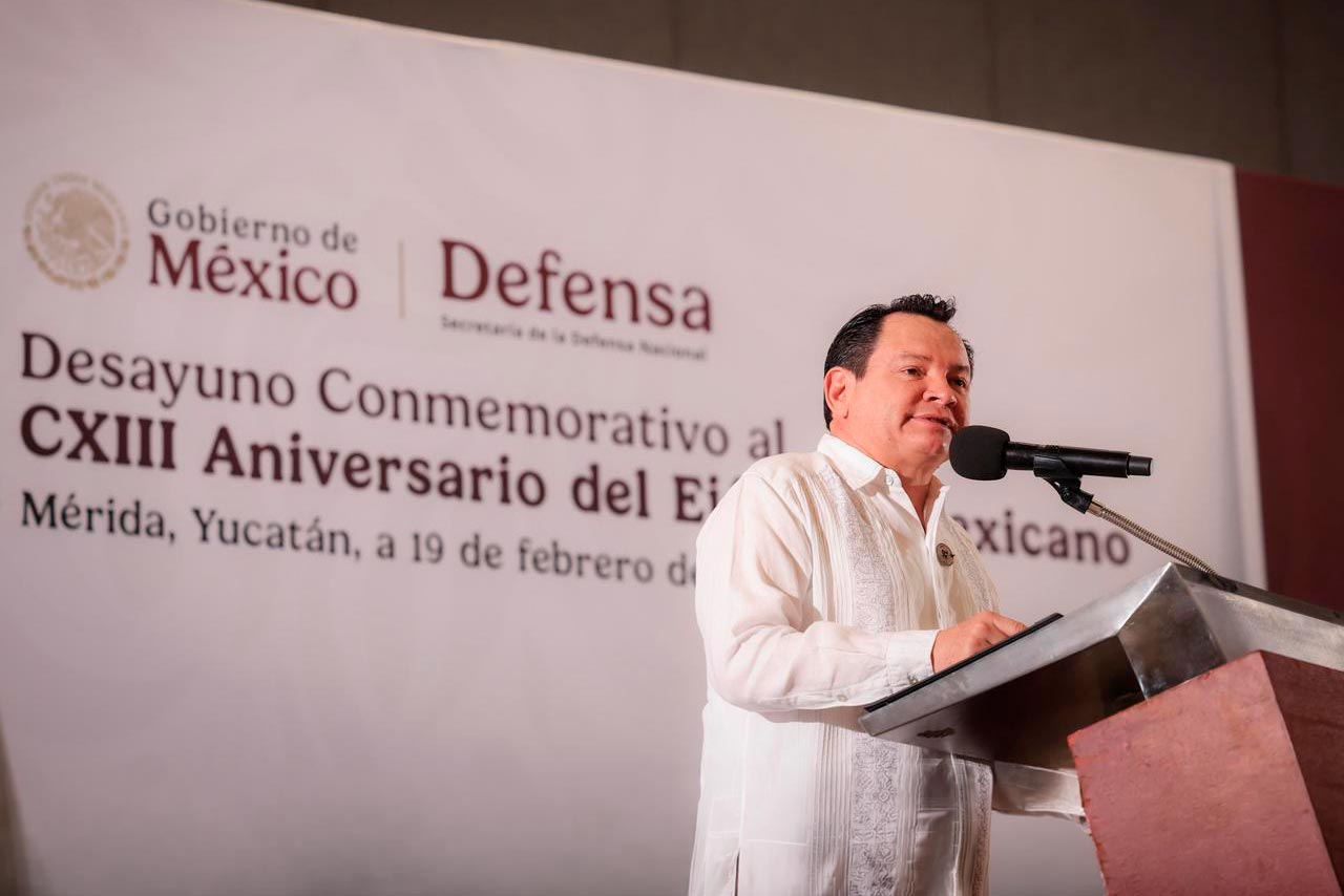 Durante un desayuno conmemorativo realizado en el Centro de Convenciones Yucatán Siglo XXI, el Mandatario destacó que el Ejército es una institución que ha acompañado a México en los momentos decisivos de su historia, por lo que hoy se conmemoran 113 años de lealtad al país y de compromiso con las y los mexicanos.