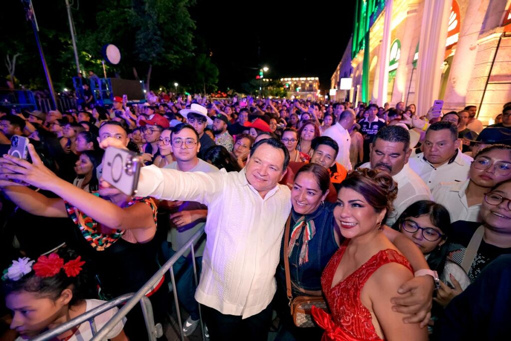 Miles de familias se congregaron la noche de este lunes en la Plaza Grande de Mérida para presenciar la ceremonia del Grito de Independencia, encabezada por el Gobernador Joaquín Díaz Mena, en lo que representó su primera conmemoración oficial al frente del estado.