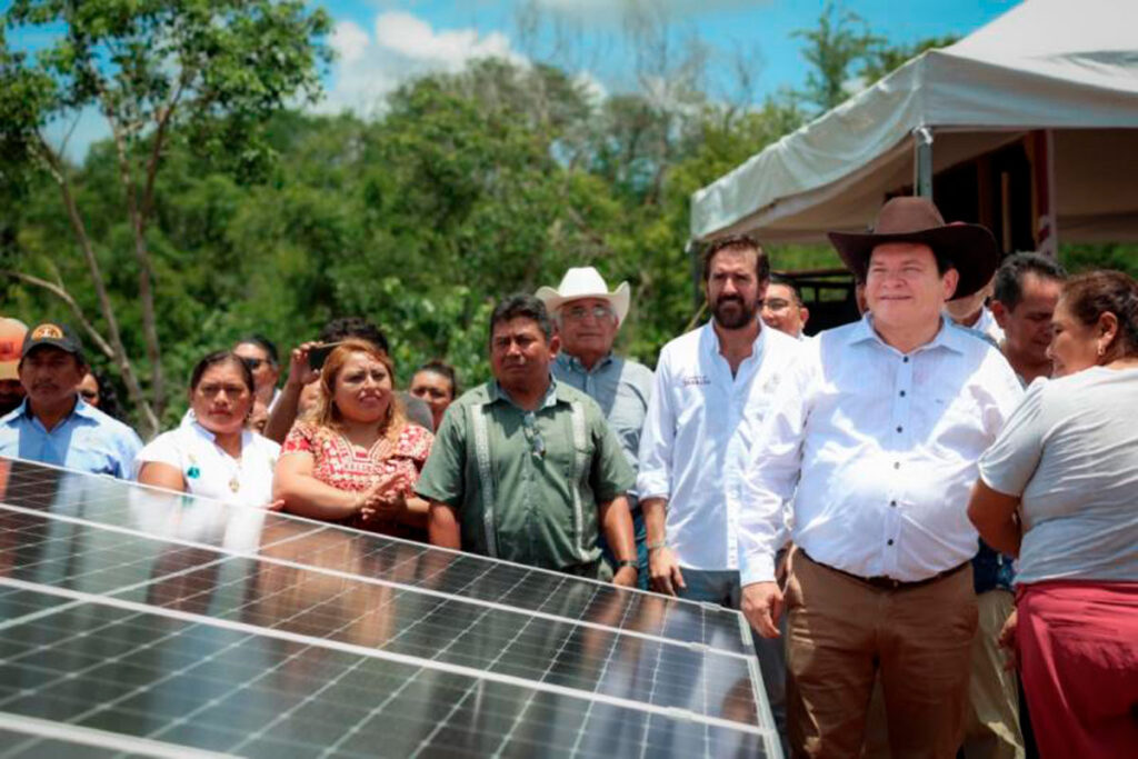 Gracias a los nuevos sistemas de riego solar, como el inaugurado hoy en la unidad productiva San Francisco de Kinchil, donde antes no llegaba el agua y se invertía en combustible, ahora las y los productores pueden regar sin gastar un solo peso, como resultado del programa de infraestructura hidroagrícola con energía solar que impulsa el Gobierno del Renacimiento Maya.