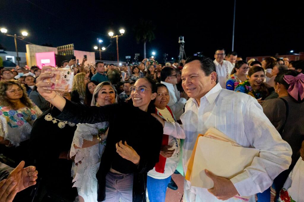 Acompañado de la Presidenta Honoraria del Sistema para el Desarrollo Integral de la Familia (DIF) Yucatán, Mtra. Wendy Méndez Naal, el mandatario estatal agradeció a la gente del sur por su apoyo y confianza, y aseguró que el Renacimiento Maya se construye también desde esta región, trabajadora y solidaria, con una enorme dignidad, que durante muchos años fue olvidada y que hoy está de pie.