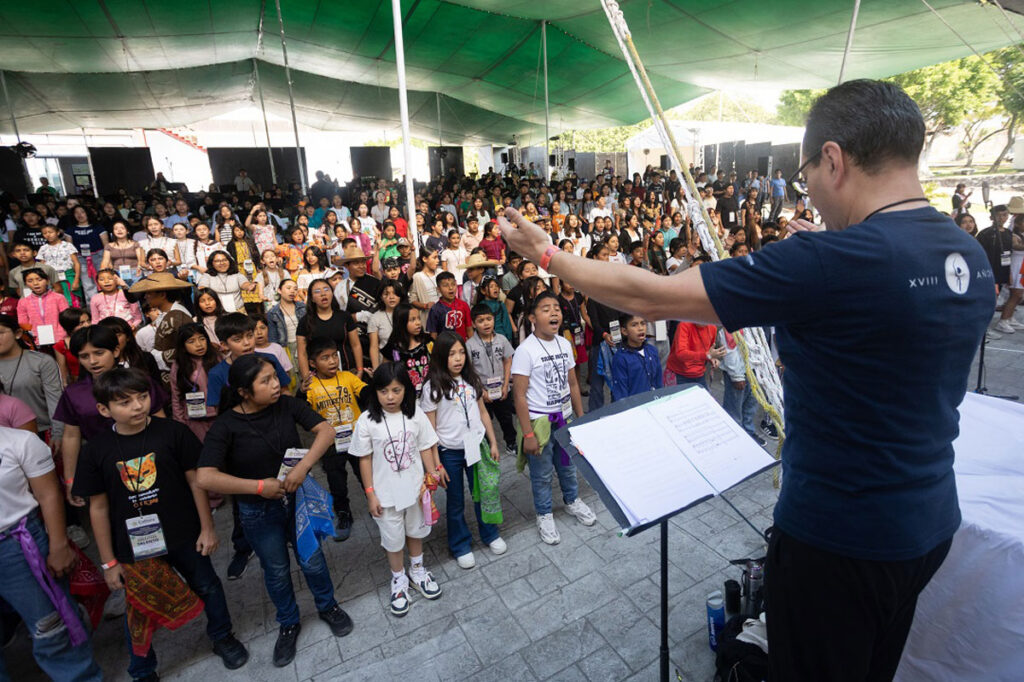 Rumbo a la presentación del próximo sábado 22 de noviembre de 2025, se lleva a cabo el campamento de la Fiesta de las Culturas Comunitarias “Yoltlajtoli – Voces Vivas”, el cual reúne, en el Centro Vacacional IMSS Oaxtepec, en Morelos, a más de 1,500 niñas, niños y jóvenes de 26 entidades del país –incluidas agrupaciones comunitarias del Sistema Nacional de Fomento Musical (SNFM), coros y orquestas comunitarias de Faros, Utopías y Puntos de Innovación, Libertad, Arte, Educación y Saberes (PILARES), y los Cuicallis: Casas de canto y poesía de la niñez indígena del Instituto Nacional de Pueblos Indígenas (INPI), para conformar un contingente de más de mil quinientas personas, infancias y juventudes–.
