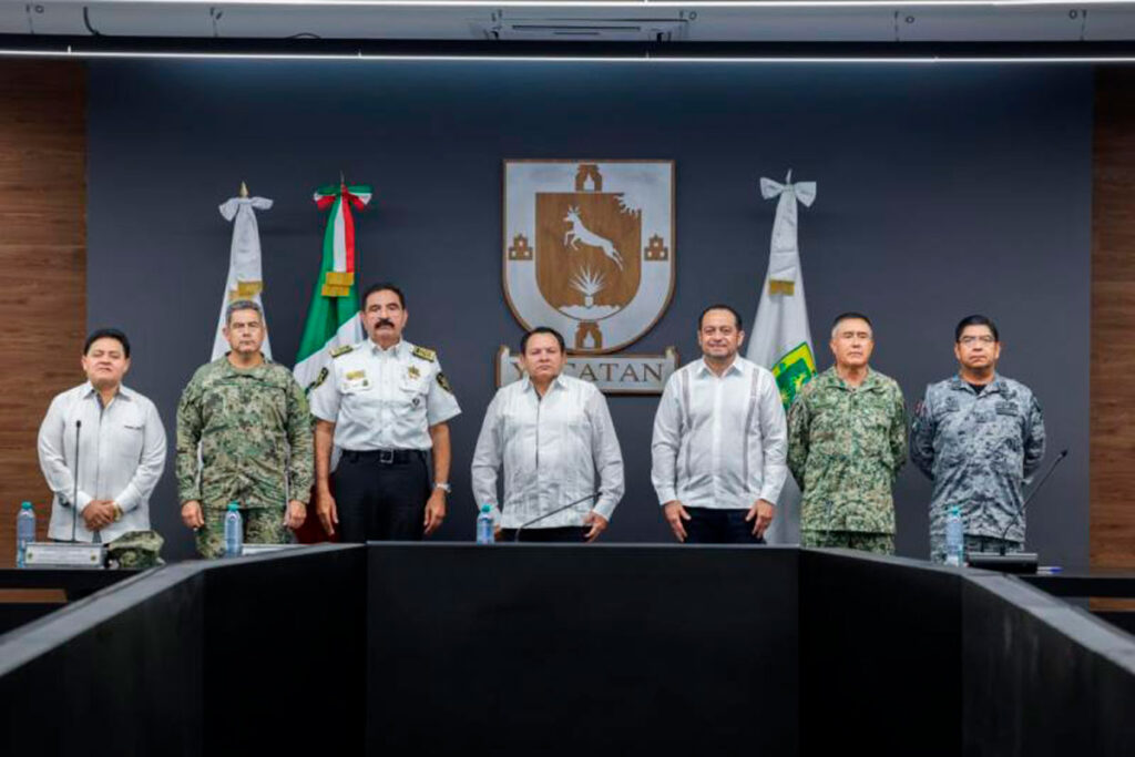 En la reunión estuvieron presentes el secretario General de Gobierno, Omar Pérez Avilés; el secretario de Seguridad Pública, Luis Felipe Saidén Ojeda; el comandante de la 32 Zona Militar, General de Brigada Bernardo Reginaldo Reyes Herrera; el Jefe de Estado Mayor de la Novena Zona Naval, Contralmirante Cuerpo General Víctor Omar Mendoza Aguilar; el coordinador estatal de la Guardia Nacional en Yucatán, General Brigadier David Morales Hernández; y el Fiscal General del Estado, Juan Manuel León León.