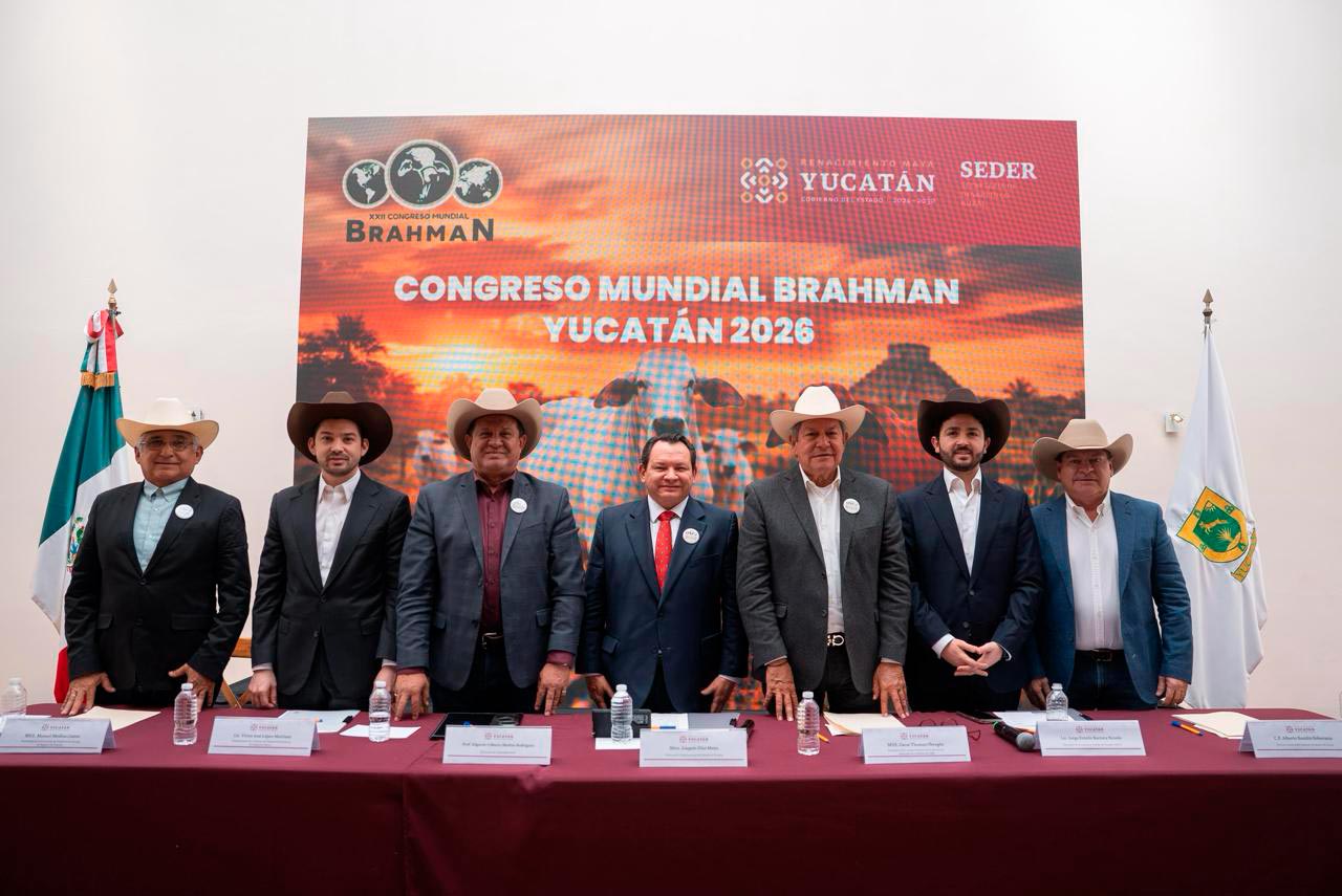 El Gobernador Joaquín Díaz Mena anunció que Yucatán será sede del Congreso Mundial Brahman 2026, evento de alcance internacional que reunirá en Mérida a criadores, productores, especialistas e inversionistas del sector pecuario provenientes de diversos países, con lo que se consolidará a México como referente global en genética bovina y producción ganadera.